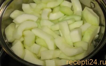 Режем плод небольшими дольками, которые нужно еще раз хорошо прополоскать под проточной водой. Добавляем их в кастрюлю с горячей водой и варим 10 минут.
