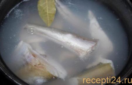 Тщательно чистим рыбу, отрезаем плавники, извлекаем все внутренности, пленочки. Разрезаем на куски, длиной 7-10 см. Параллельно ставим на плиту кастрюлю с холодной водой, доводим до кипения.