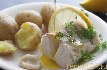 Отварной минтай можно подавать с любым гарниром, дополнив его на свой вкус зеленью, овощами или различными соусами.
