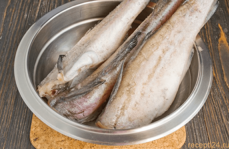Предварительно рыбу нужно разморозить. Для этого можно окунуть тушки в холодную воду и оставить так на час-полтора.