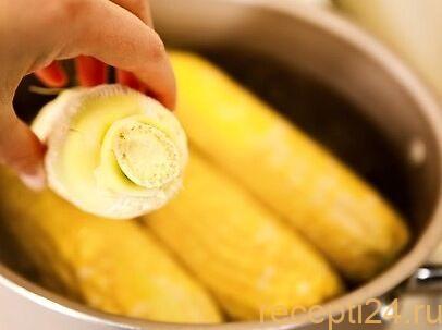 Початки варят до готовности. Молочной кукурузе нужно 10-15 минут. Чем старше кукуруза, тем больше времени нужно до полной готовности.