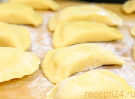 Присыпаем мукой поверхность и кладем на нее слепленные вареники. Этот этап приготовления идеален для заморозки. Складываем вареники на хорошо посыпанную мукой деревянную дощечку и отправляем ее в морозилку. Спустя несколько часов изделия можно пересыпать в пакет для удобного хранения в морозилке.