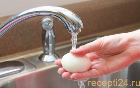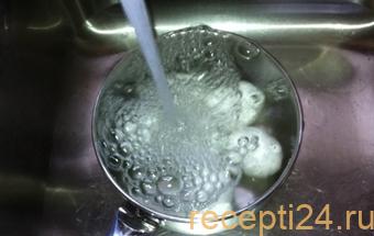 - Чтобы внутренности сохранили нужную консистенцию, после окончания варки поместите яйца под струю холодной воды.