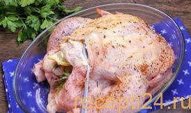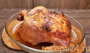 Поместите курочку в предварительно разогретую духовку. Блюдо выпекается в течение 2-х часов при температуре 180-200 градусов. Приятного аппетита!