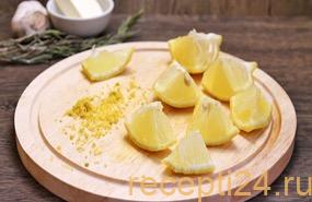 Промойте и просушите лимон. Используя острый нож или мелкую терку, натрите 2 ч.л. цедры, снимая только желтую шкурку. Сам лимон нужно нарезать на 5-6 кусочков небольшого размера.