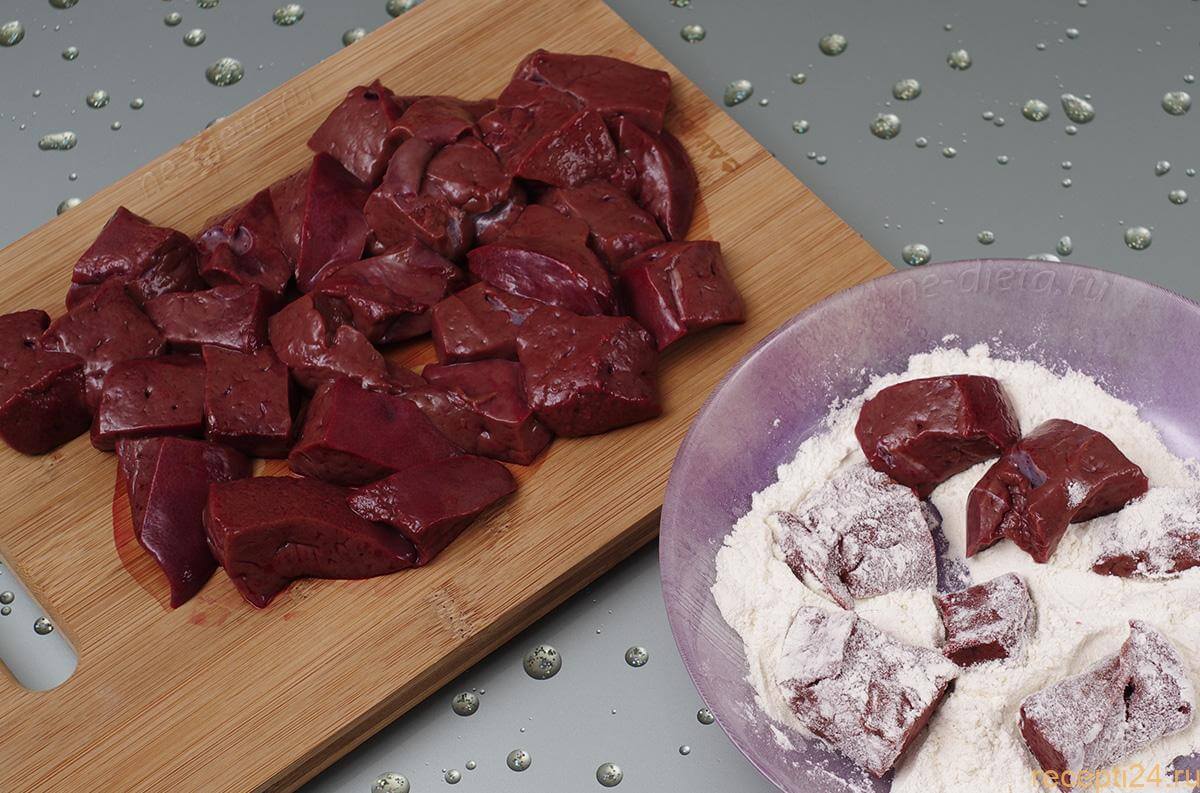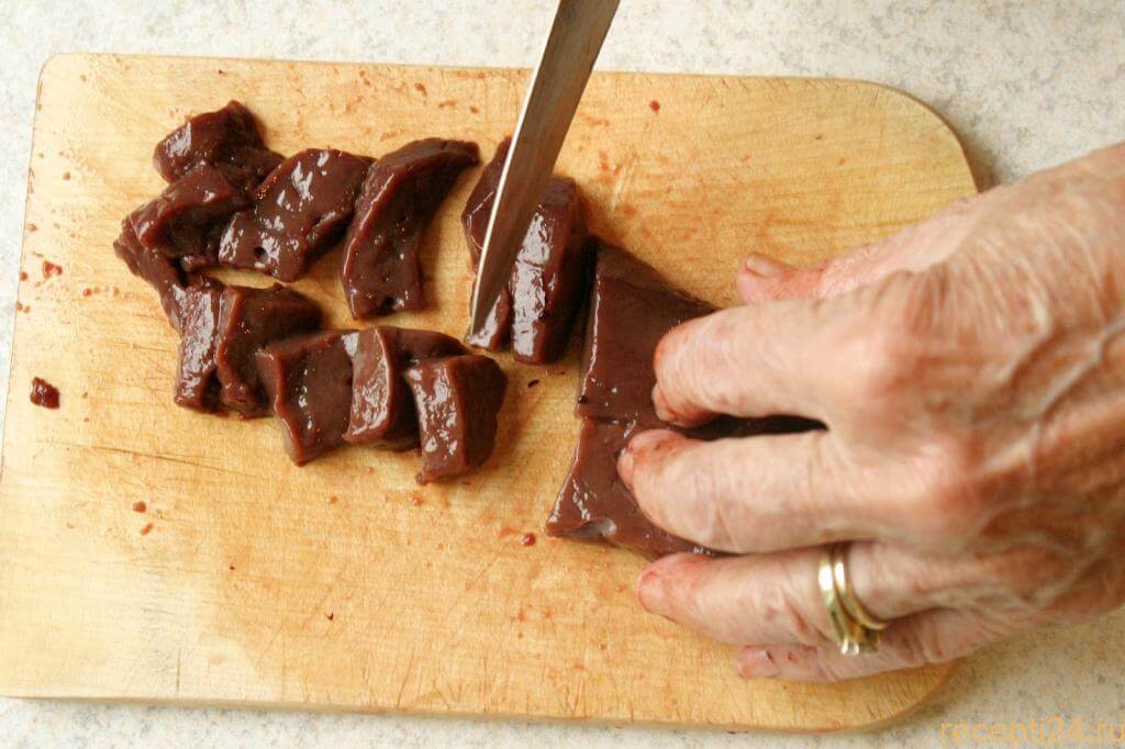 - Чтобы печень получилась мягкой и сочной, старайтесь нарезать её на аккуратные куски, толщина которых не должна превышать 1,5 см.