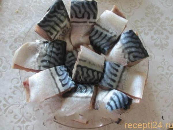 Но напоминаем, что от соления можно отказаться, поскольку эта рыба – соленая сама по себе. Попробовав приготовить скумбрию, не посолив ее, вы приятно удивитесь. Подготовленные тушки режем на небольшие куски. -