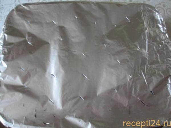 Емкость закрываем фольгой, не забыв сделать в последней небольшие отверстия: это необходимо для того, чтобы выходил пар.