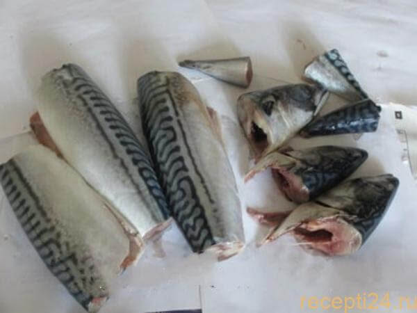 Сначала рыбу необходимо подготовить. Если она мороженая – разморозить, отрезать хвост, голову. Далее скумбрию следует выпотрошить, очистить брюшко от пленок, внутренностей.