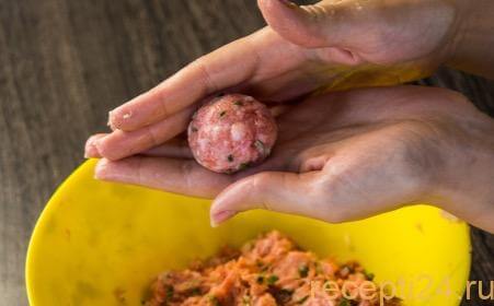Руками формируем небольшие круглые тефтельки, выкладываем их на доску или плоскую тарелку.