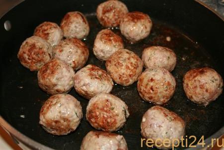 Когда все тефтельки готовы, нужно обжарить их на сковородке с подсолнечным маслом. Сильно зажаривать не нужно, достаточно просто подрумянить.
