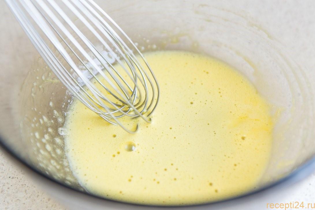 Яйцо разбивается и размешивается венчиком до полного соединения белка и желтка.