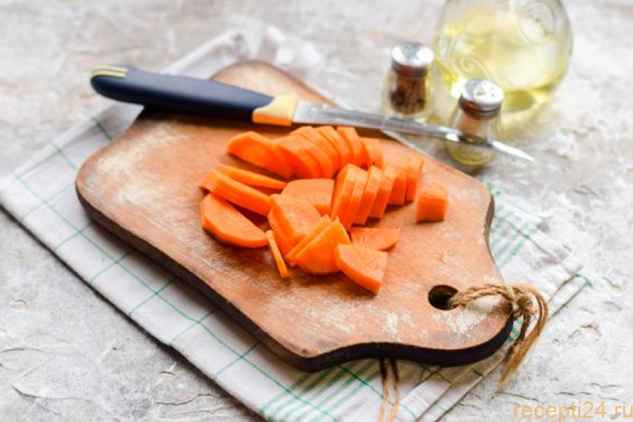 То же самое проделывают с морковью. Ее можно натереть на терке, или же порезать. Второй вариант сделает блюдо более ярким и насыщенным.