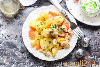Многие ошибочно считают картошку пустым продуктом. Те, кто соблюдает правила здорового питания всячески ее избегают. На самом деле, тушеная картошка с курицей в кастрюле полезна для организма.