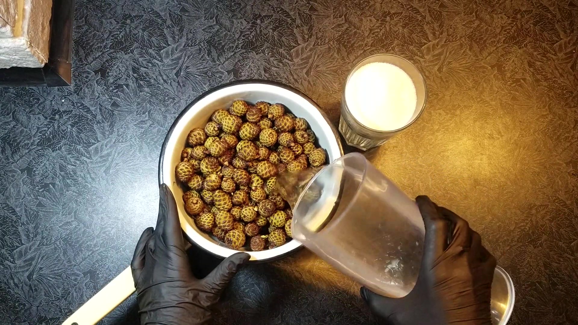 Залить водой молодые шишки сосны
